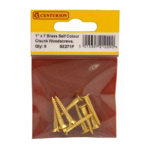 Centurion 1 X 7 CSK Brass Woodscrews - Pack Of 9