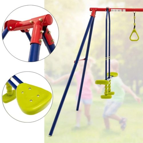 Built with a powder-coated steel frame, reinforced A-legs, and cross braces, this set ensures safety and long-lasting durability. Adjustable swing ropes allow the set to adapt to children of different ages, while comfortable plastic seats and secure handrails provide extra stability. With easy assembly and ground stakes included for secure installation, this versatile swing set is a safe and exciting addition to any garden.