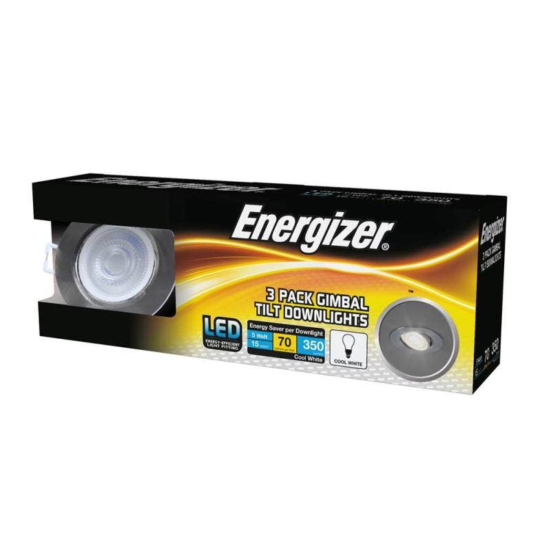 Energizer 5W Brushed Chrome Gimbal Tilt Cool White Downlights - Pack Of 3