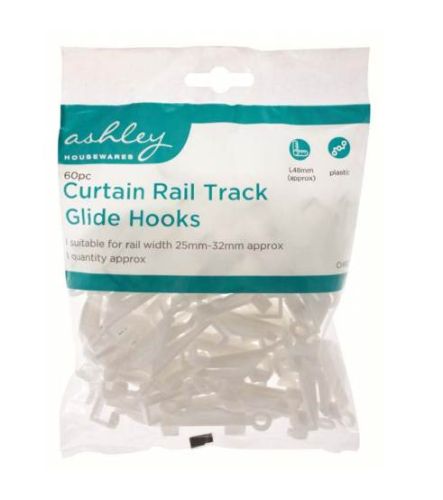 - These white curtain rail track glide hooks are manufactured from strong & sturdy plastic material. They are easy to take on/off & are suitable for use with any curtains with a general heading tape.