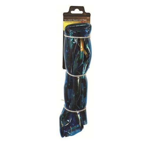 - This heat treated & hardened heavy duty square link chain is protected by a transparent plastic sleeve & is ideal for use as a motorcycle lock or for securing many other items.