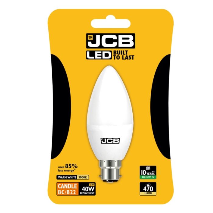 6w (40w Equivalent) JCB LED BC Opal Candle Light Bulb