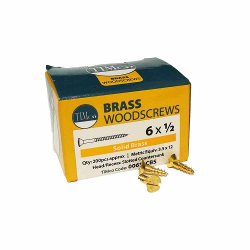 Timco Brass Slotted Countersunk Woodscrews - 6 x 1/2 - Box Of 200