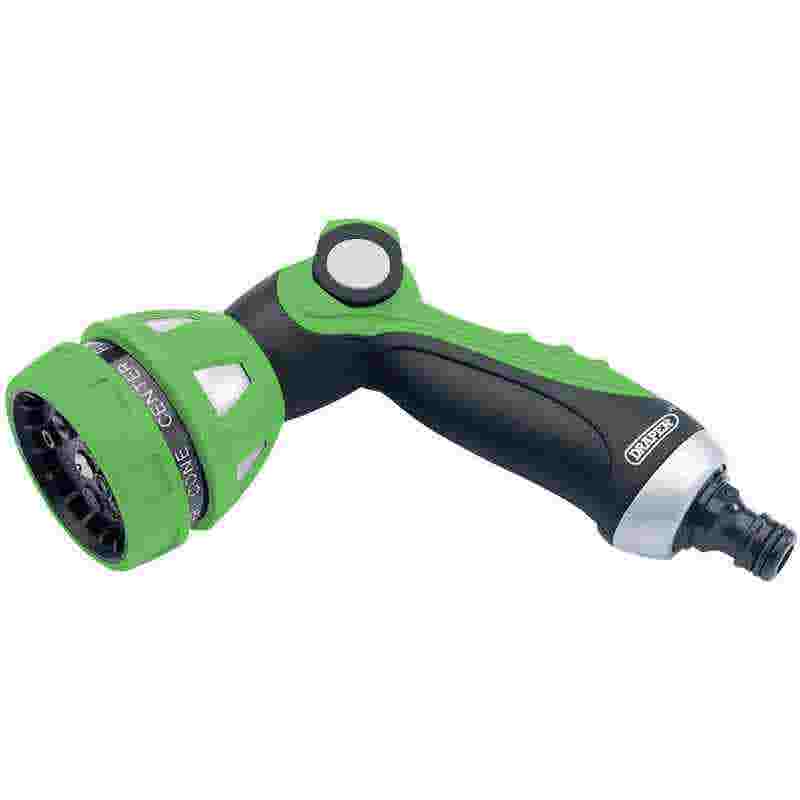 Seven-pattern spray gun, manufactured from impact-resistant plastic and fitted with an adjustable spray head for choosing between spray patterns: mist, shower, jet, soaker, flat, centre and cone. No matter the spraying pattern required, you’ll find a spray pattern necessary for the job. Fitted to an ergonomic contoured soft grip handle, this 7 spray pattern garden watering gun is perfect for domestic gardens.
