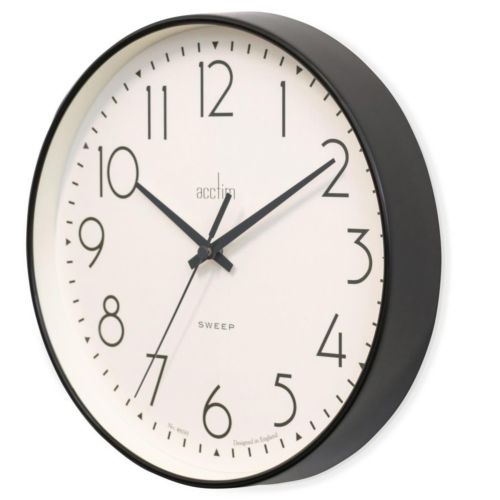 Acctim Earl 25cm Black Sweep Wall Clock – Silent Non-Ticking Analog Clock with Plastic Frame, Battery Operated