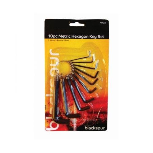 - 10pc metric hexagon key set. sizes 1.5mm to 10mm