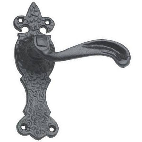 Antique Black Ironwork Fleur-de-ley Lever Door Handle on Backplate
