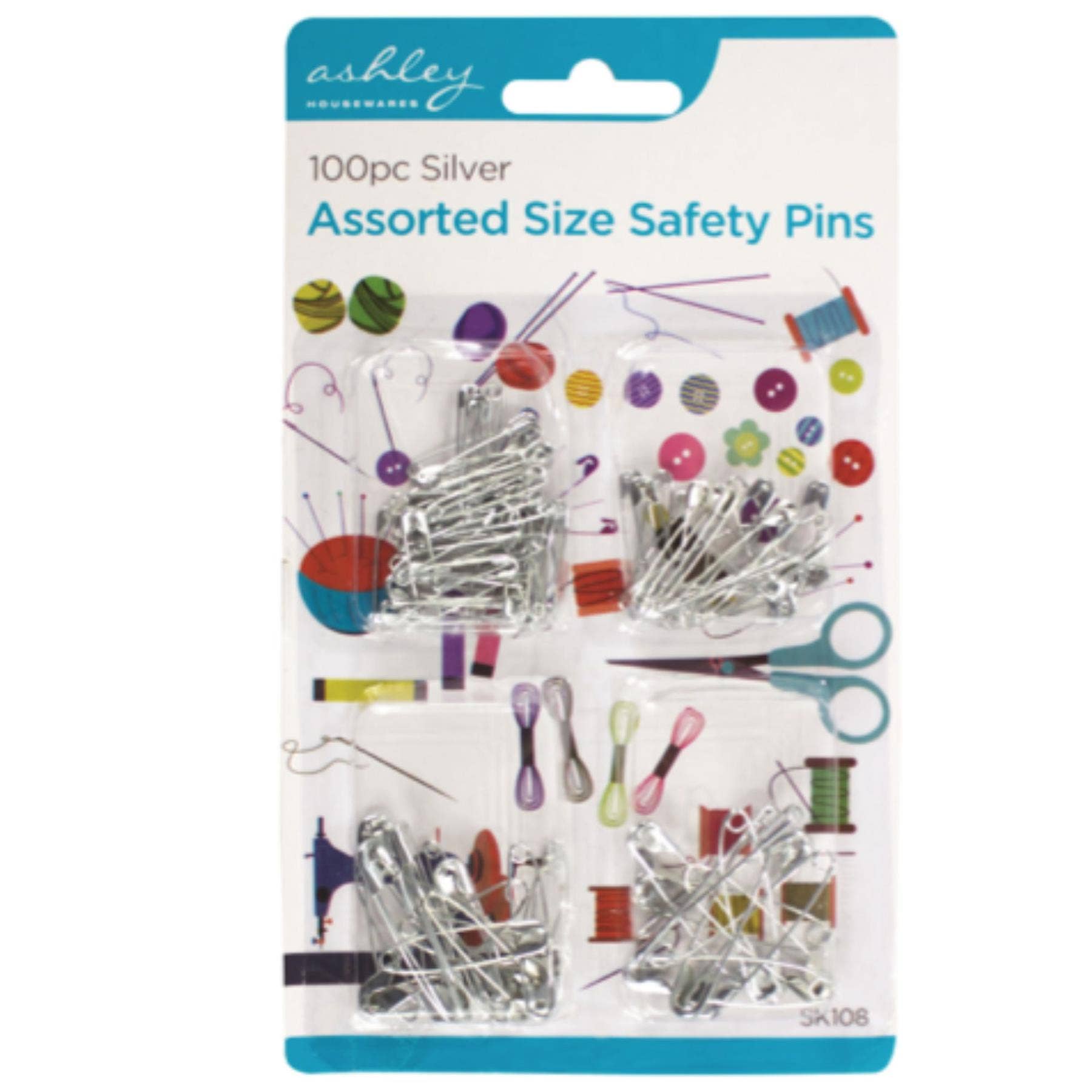 Ashley 100 Piece Assorted Safety Pins – Rust Resistant Silver Nickel-Plated Steel