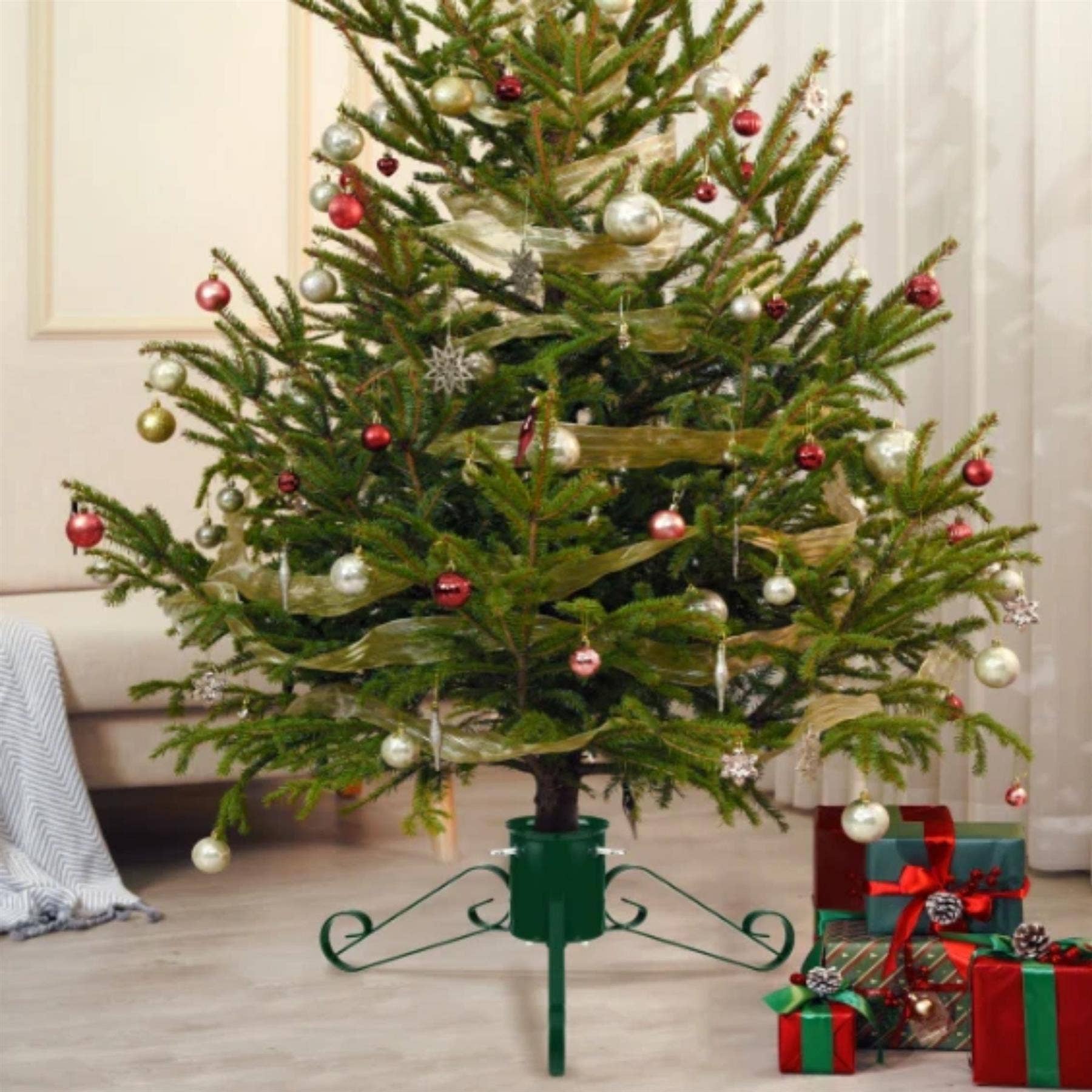 Ashley Christmas Tree Stand – Strong Metal Holder with Adjustable Securing Bolts