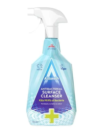 - Astonish anti-bacterial spray is a powerful and PH-neutral formula for use on hard surfaces around the home