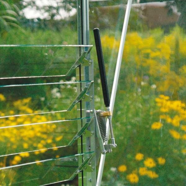 Automatically opens and closes louvre window vents on Vitavia greenhouses.