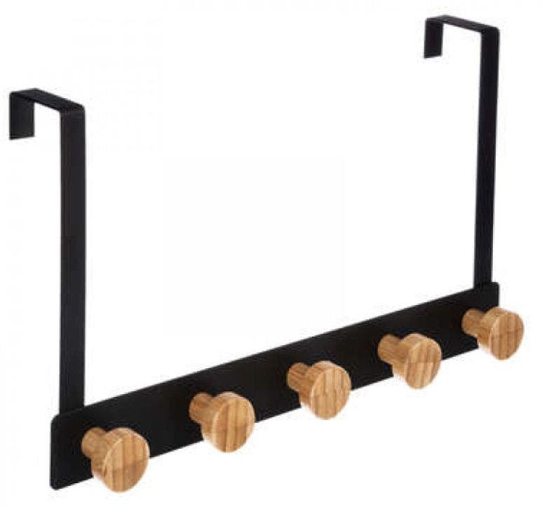 Bamboo and metal over door 5 hook rail
