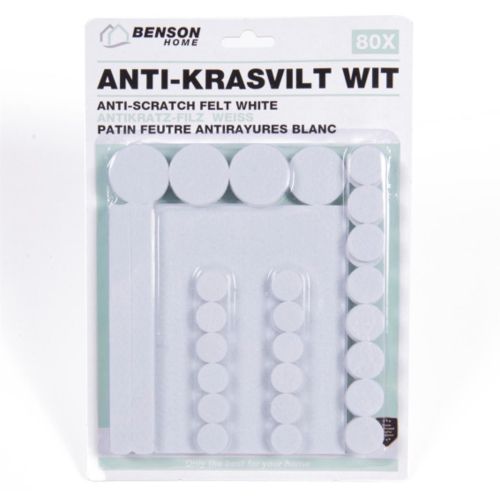Protect your floors and extend the life of your furniture with the Benson 80 Piece White Anti-Scratch Felt Pad Set. Designed to fit under chair legs, tables, and other furniture, these pads prevent scratches, reduce noise, and make moving furniture smoother. Easy to apply and available in a range of sizes and shapes, this complete set provides a practical solution for safeguarding hardwood, laminate, tile, and vinyl flooring.