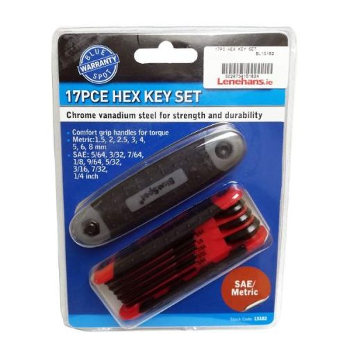 - SAE: 5/64, 3/32, 7/64, 1/8, 9/64, 5/32, 3/16, 7/32, 1/4 inch
