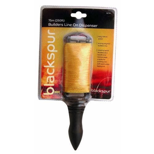 - rotating spool doubles as a handle and incoporates a spike for pushing into soft earth when laying out