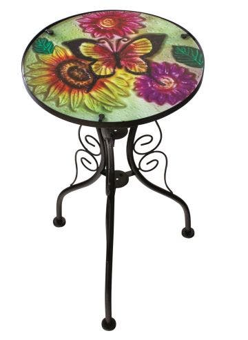 - The table also has non slip feet allowing it to be displayed on a variety of outdoor surfaces.
