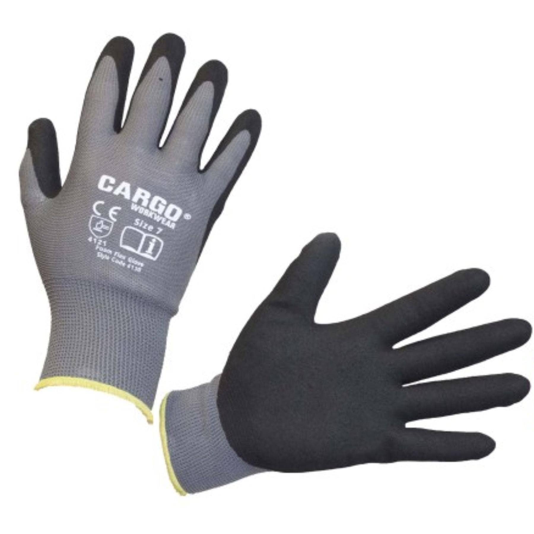 Cargo Foam Flex Sandy Nitrile Gloves – EN 388 Certified Safety Gloves with 13G Polyester Liner and Knitted Cuff I Size Large