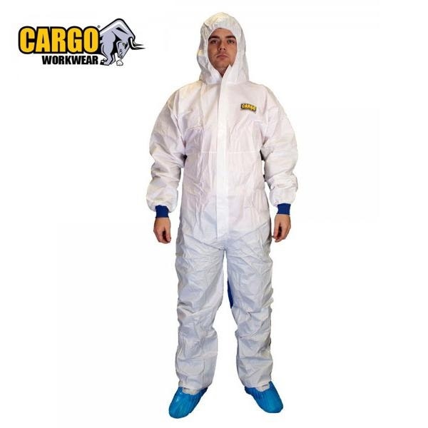 - Cargo Multipurpose Disposable Suit with Breathable Back Panel, has a three piece hood, breathable and elasticated back panel, two way front zip closure, knitted cuffs and is non linitng as well as latex and silicone free.