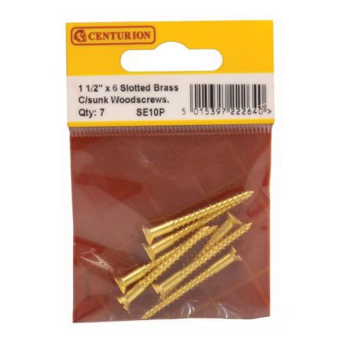 Centurion 1.5" x 6 Slotted Brass CSK Woodscrews - Pack Of 7
