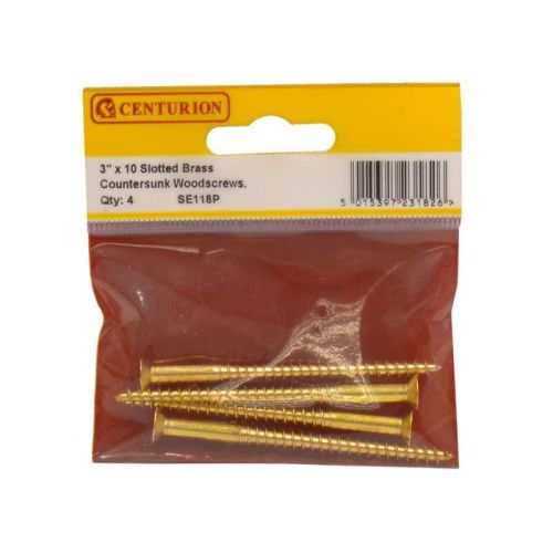 Centurion 3" x 10 Slotted Brass CSK Woodscrews - Pack Of 4