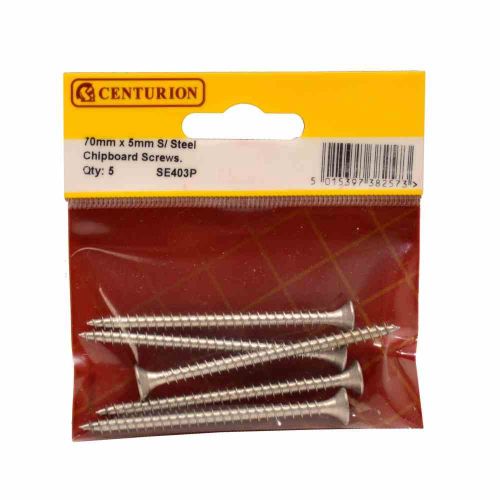 Centurion 5 x 70 Stainless Steel Csk Chipboard Screws - Pack Of 5