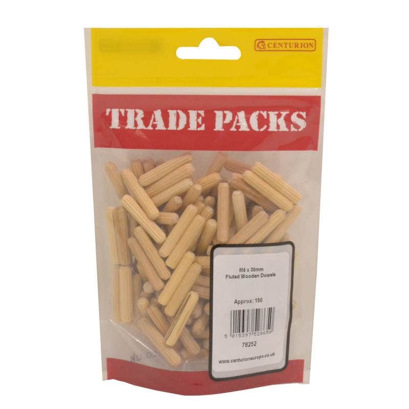 Centurion M6 x 30mm Fluted Wooden Dowels - Pack Of 150