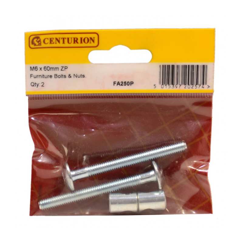 Centurion ZP M6 x 60mm Furniture Bolt & Nut - Pack Of 2