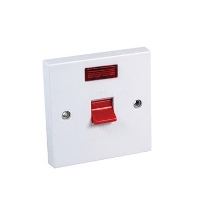 Cooker Switch Double Pole 45 Amp 1 Gang Plus Neon White