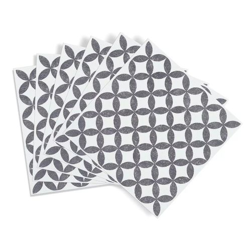 Made from rigid vinyl with a water-resistant surface, the tiles are designed to cover grout lines, leaving a smooth and clean finish. With no grouting required, simply peel, stick, and press onto a clean, flat surface. The tiles can be easily cut by scoring with a utility knife and snapping into place, making them suitable for DIY projects.