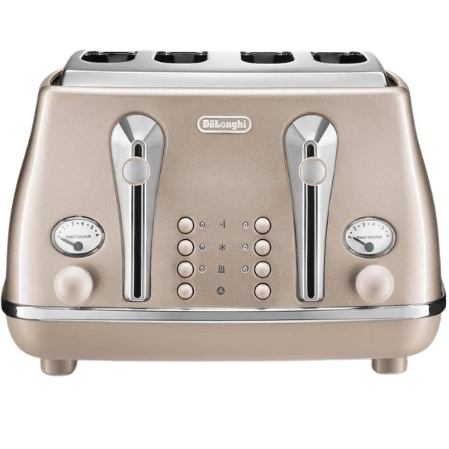 De’Longhi Icona Metallics 4 Slice Toaster Beige – Stylish Design with Versatile Functions
