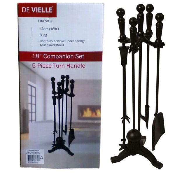 De Vielle 5 Piece Fireplace Companion Set - 18" Black