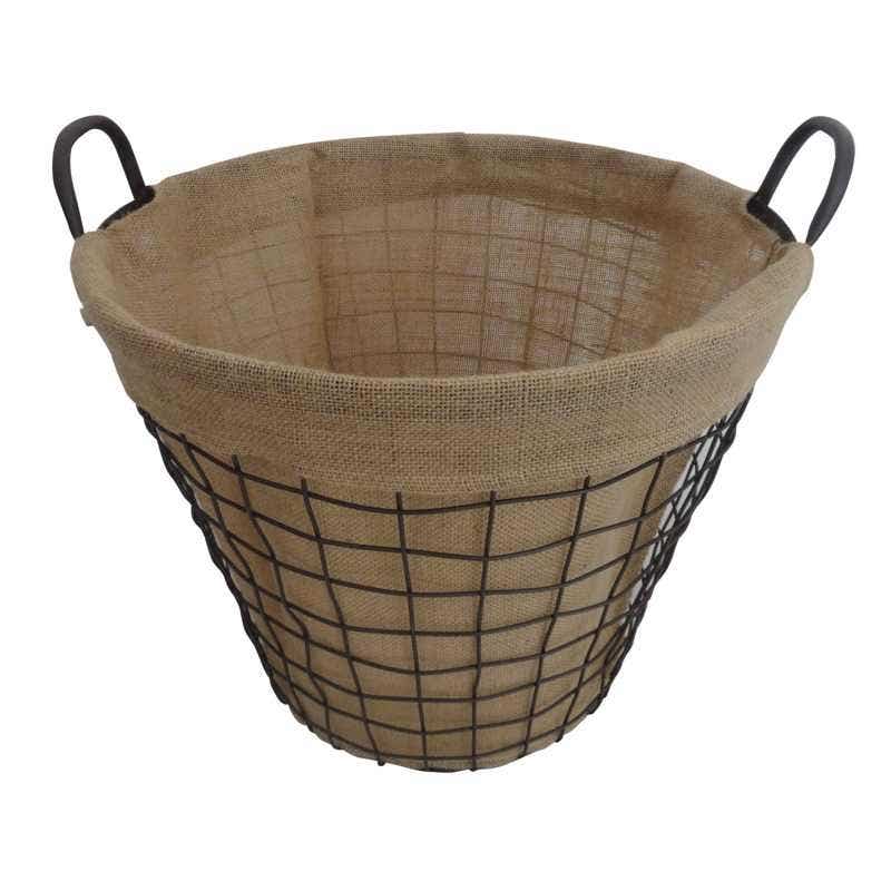 - Metal round log basket with jute lining
