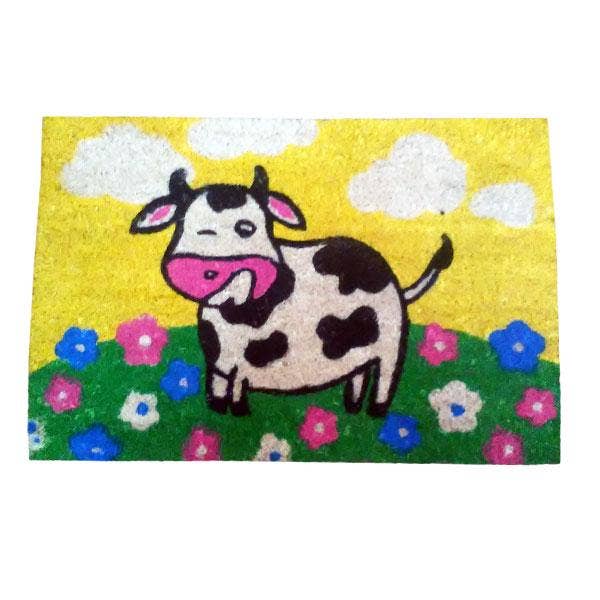 Dosco Bright Cow Design Coir Door Mat - 40 x 60cm