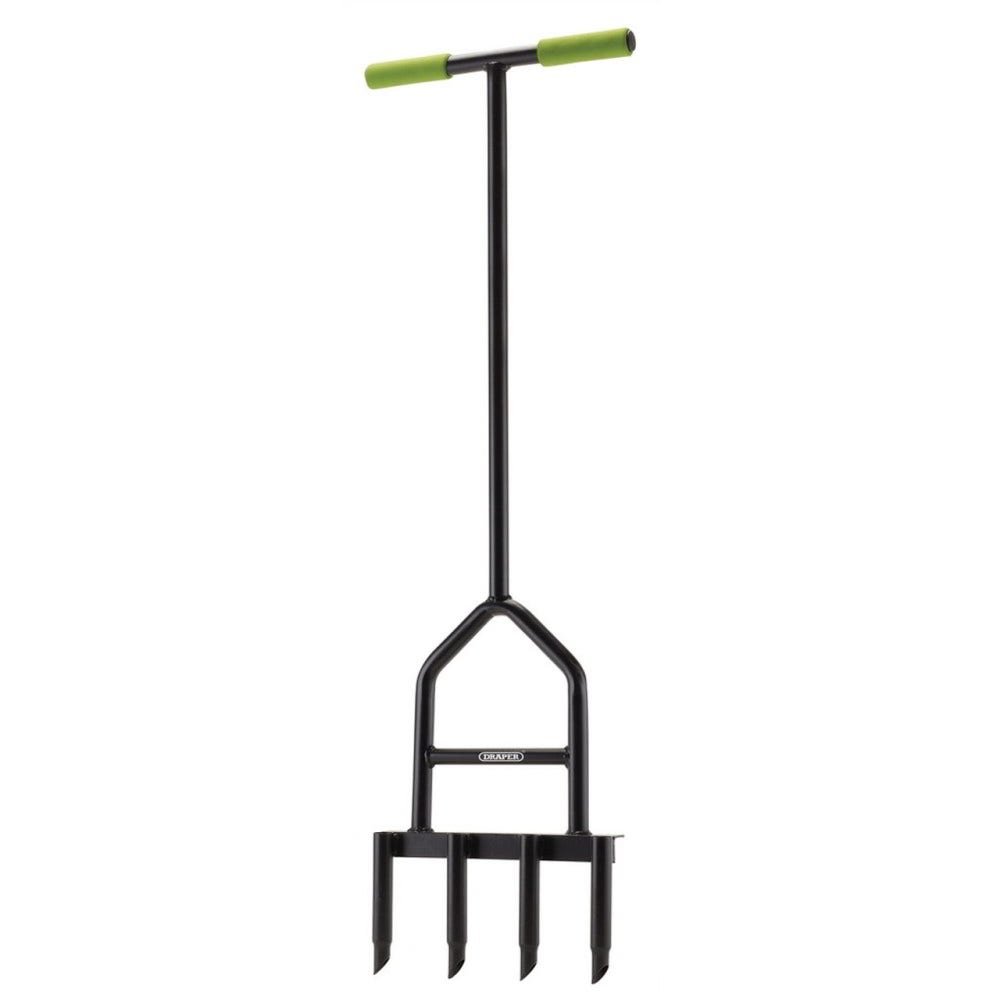 This heavy-duty lawn aerator has four prongs to improve drainage and remove impacted soil and grass with minimum soil adhesion. Constructed from high-quality tubular steel with a black powder-coated finish for corrosion protection. It has a T-shaped handle with durable soft foam grips for comfort during use. The shaft is a good height, reducing the need for bending and reducing back strain. The footplate enables extra-pressure to be applied as needed.