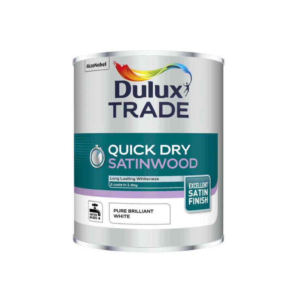 Dulux Trade Quick Dry Satinwood Paint (PBW) - Pure Brilliant White - 1L