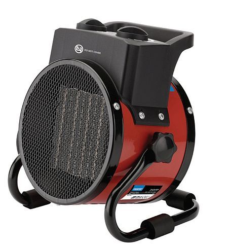 This high output PTC electric space heater is designed to heat enclosed spaces up to 20m² quickly. There are two heat settings and a built-in adjustable capillary thermostat that is easily set using a dial, to maintain the room temperature at the desired level. It is installed with overload safety protection. The heater and stand is made from high-quality steel, and the direction of heat can be angled and easily locked in position. Fitted with a handle for ease of transportation.