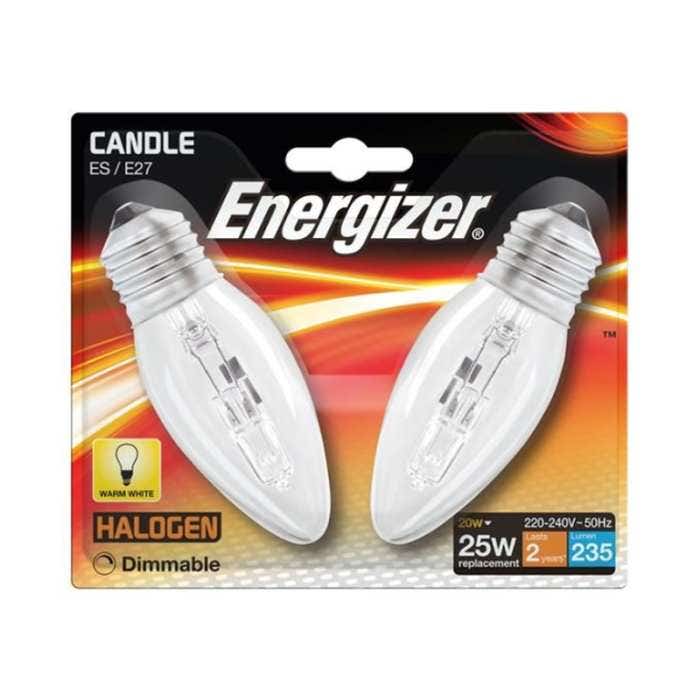 Energizer 20W Halogen Clear Candle E27 Lightbulb - Pack Of 2