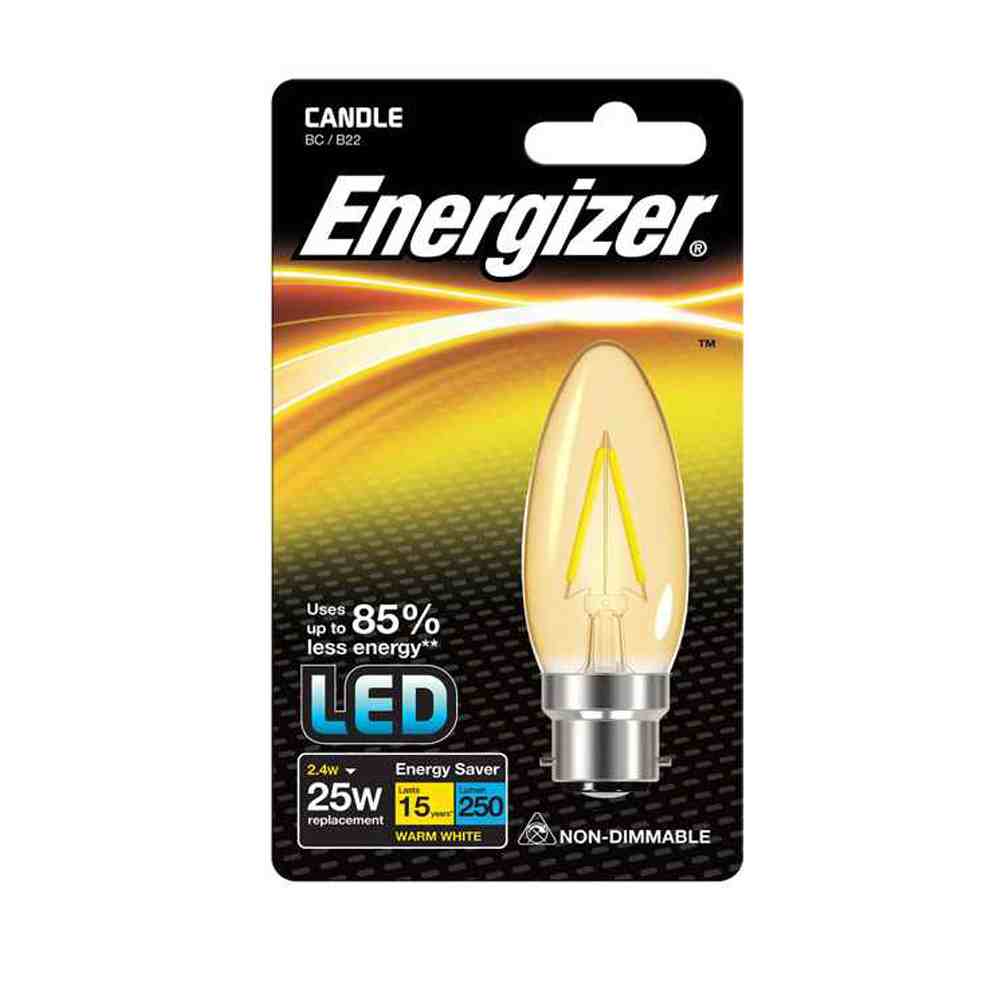 Energizer 2.4w Filament LED Clear Candle B22 Lightbulb