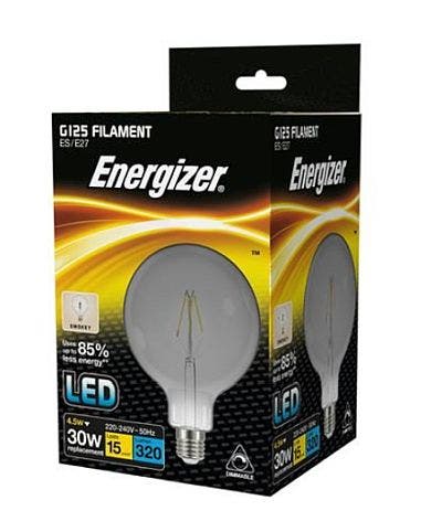 Energizer 4.5W (30W) E27 G125 Dimmable LED XL Globe Filament Smokey