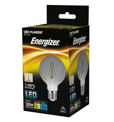 Energizer 4.5W (30W) E27 Dimmable LED Large Globe Filament Smokey