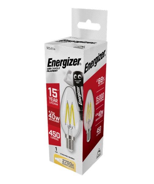 Energizer LED 5W (40W) 470 Lumen E14 Full Glass Filament Candle Lamp Dimmable Warm White