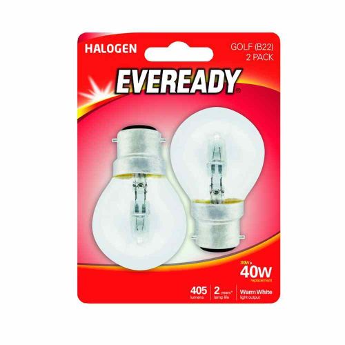Eveready 30W Halogen Clear Golf B22 Lightbulb - Pack Of 2