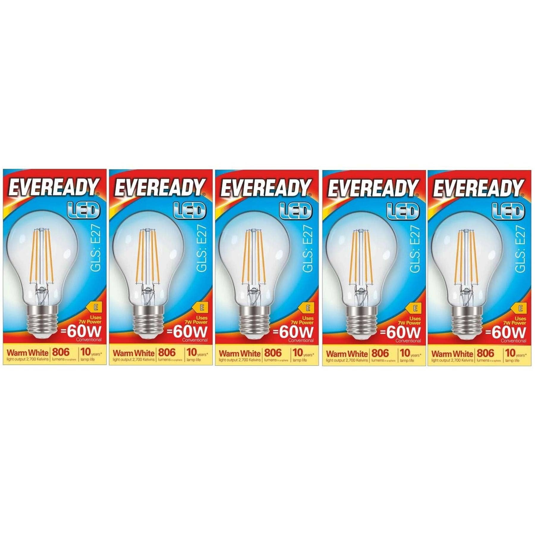 Eveready 7W E27 LED Clear Filament GLS Bulbs 806 Lumens Warm White Equivalent to 60W I Pack of 5
