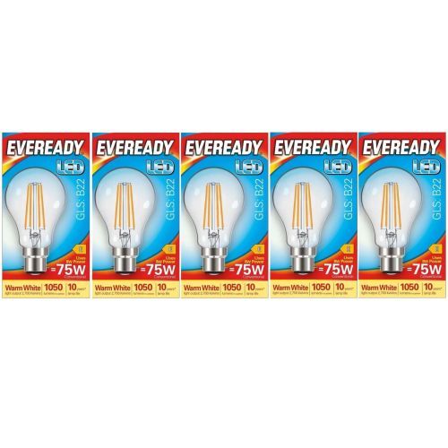 Eveready 8W B22 LED Clear Filament GLS Bulbs 1050 Lumens Warm White Equivalent to 75W I Pack of 5