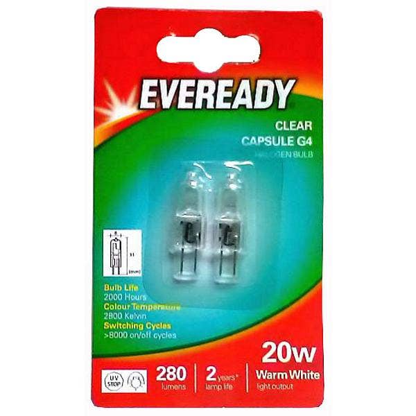 Eveready G4 20W Clear Halogen Capsule Light Bulb - Pack of 2