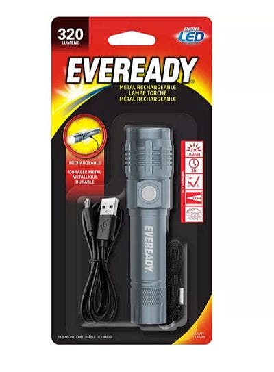 Our Metal Eveready Value Rechargeable Torch is a smart portable flashlight to have around. This flashlight has a durable aluminum body and comes with a rechargeable 18650 battery and a Micro-USB charging cable, it can be recharged directly by a power bank, car charger or other USB power source once it runs out – no need to buy extra batteries. With 3 mode options (high, low, strobe), this light is perfect for camping, hiking, fishing, dog walking, power outages, and emergencies. .