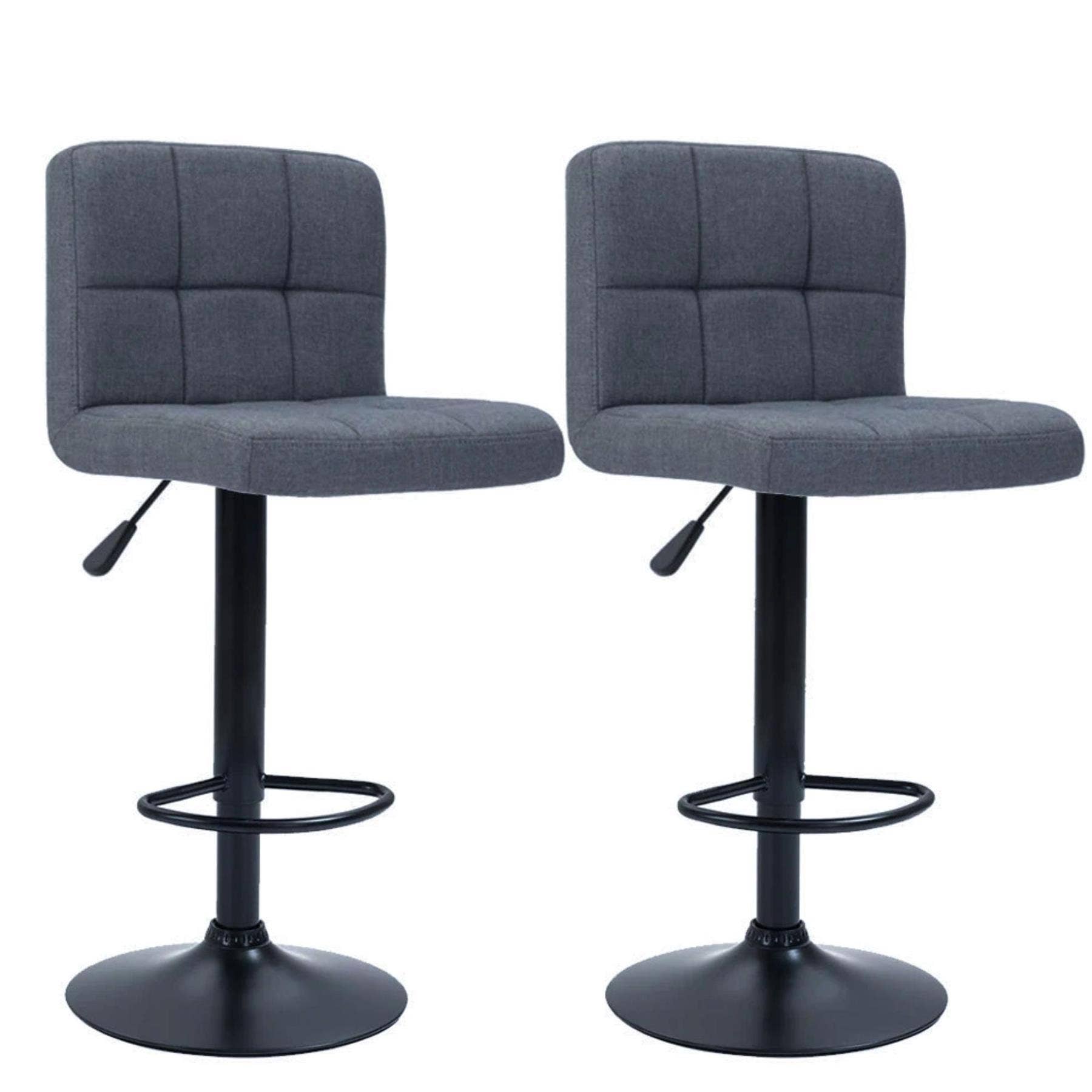 Fabric Covered Bar Stools – Set of 2 I Adjustable Dark Grey Cushioned Seats
