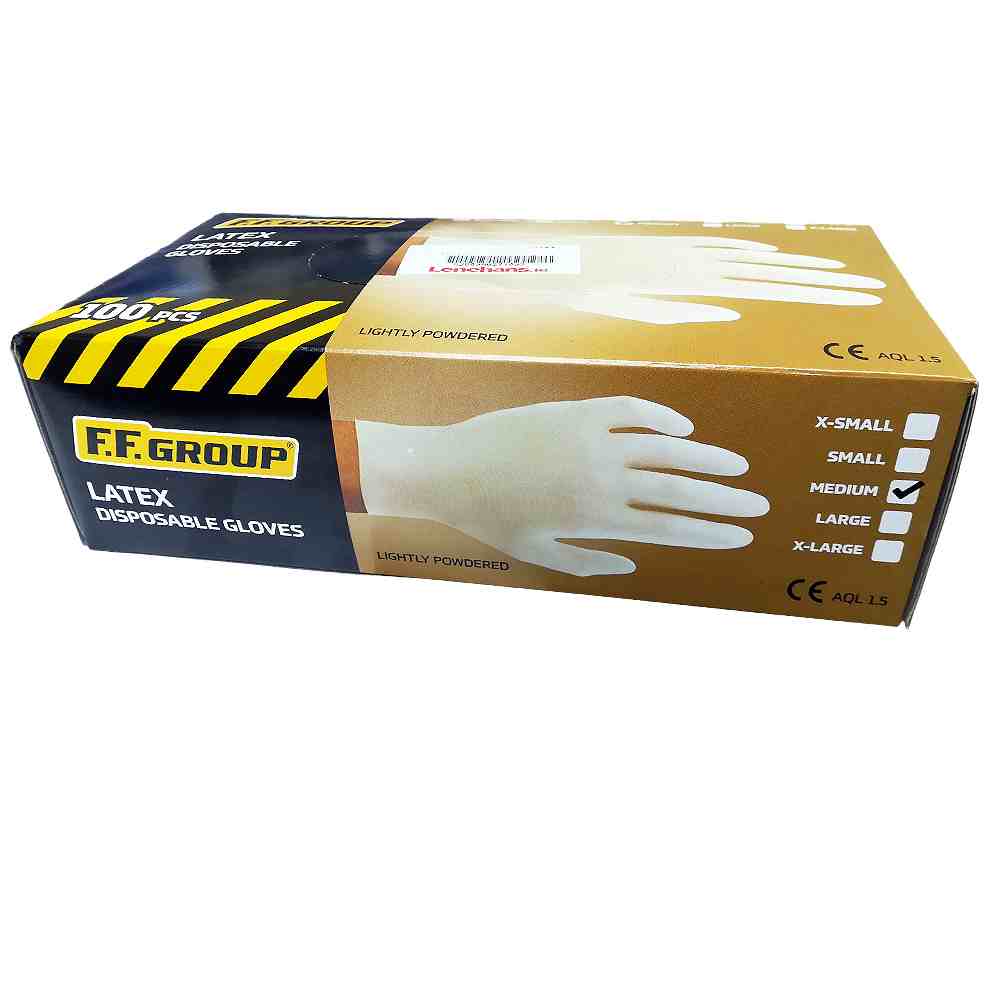 F.F Group 100 Piece Latex Disposable Gloves - Medium