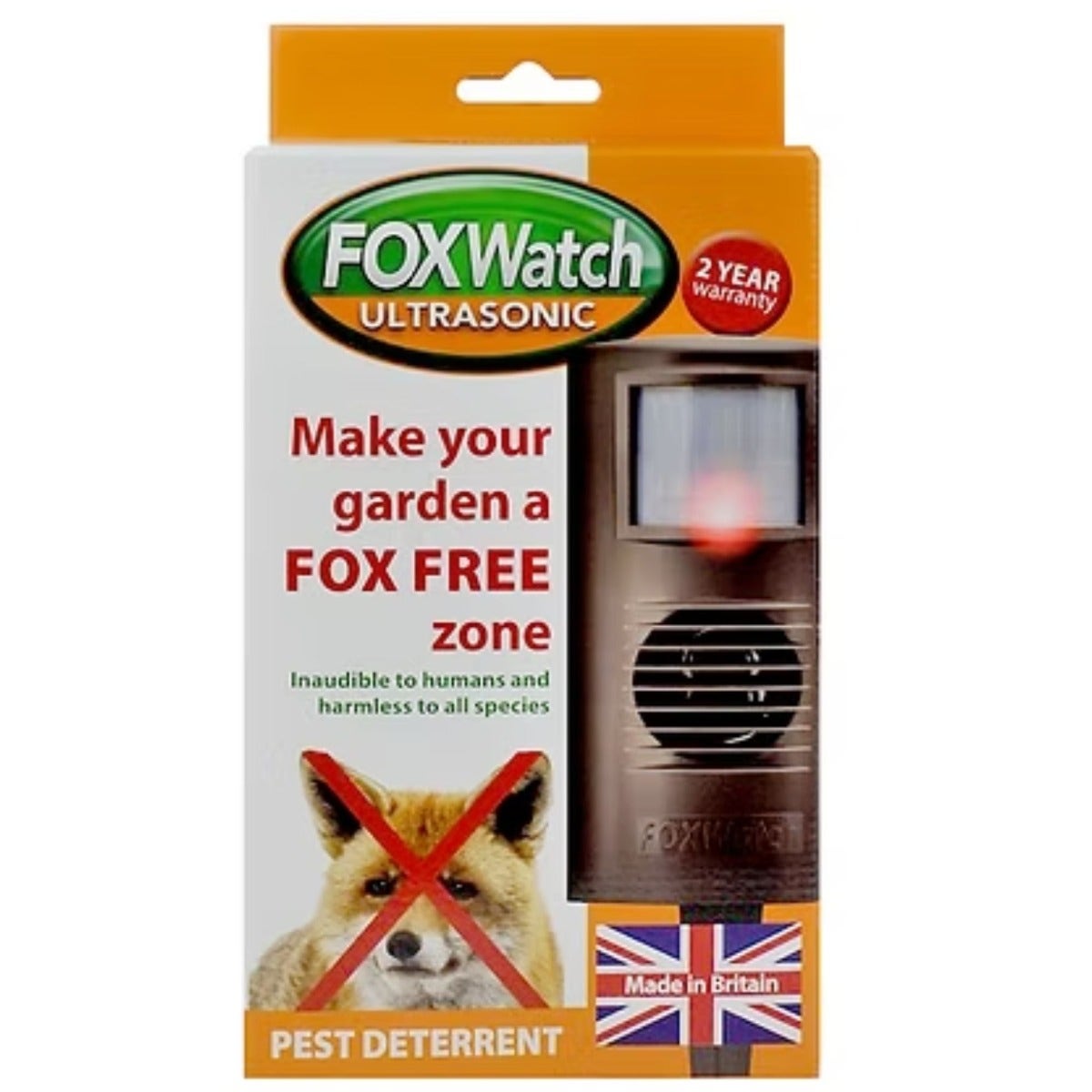 A scientifically proven, humane solution to deter foxes from your property. Foxwatch uses an infra-red sensor to detect movement and body heat, emitting an ultrasonic signal that repels foxes without causing harm.