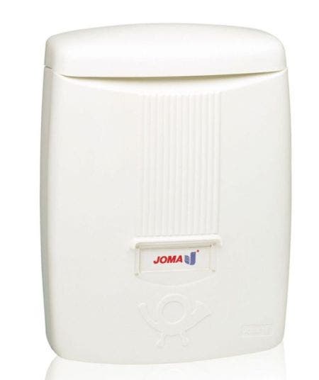 White letterbox with opening at the top and back. This means it can be used as a wall mailbox and letterbox for behind a fence, gate or door.
